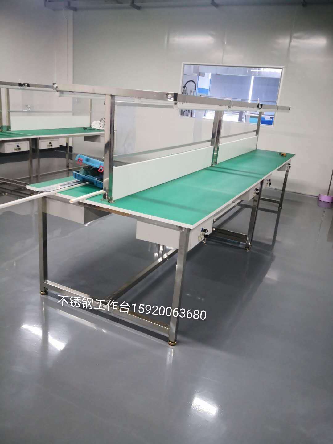 1.支架采用优质40*40mm 201不锈钢(304不锈钢可定制),每台标配带排插1个,配电线,配作业指导书看板,配调节脚,桌脚采用五金配件(五金配件结构简单连接牢固安装快捷等特点),长度,宽度,高度均可以订做。台面承重可达200-300kg