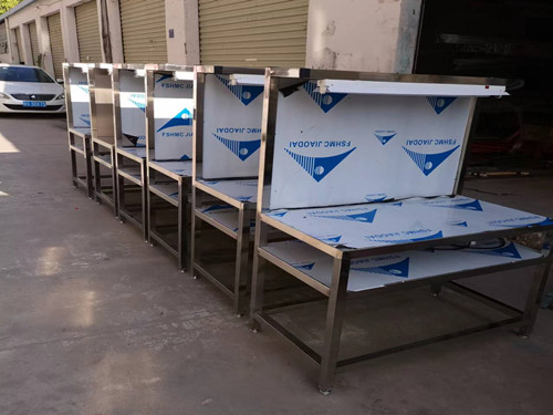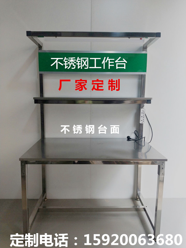 不锈钢整体框架采用优质40*40mm 201不锈钢(304不锈钢可定制),配调节脚,桌脚采用五金配件(五金配件结构简单连接牢固安装快捷等特点),长度,宽度,高度均可以订做。台面承重可达200-300kg。