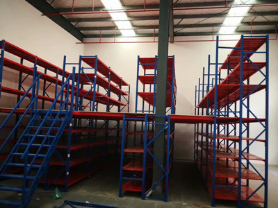 阁楼货架是一种充分利用仓库上层空间的简易货架。在已有的货架或工作场地上建造一个中间阁楼以增加储存的面积。阁楼楼板上一般可放轻泡及中小件货物或储存期长的货物,可用叉车、输送带、提升机、电动葫芦或升降平台提升货物。阁楼上一般采用轻型小车或托盘牵引小车作业。