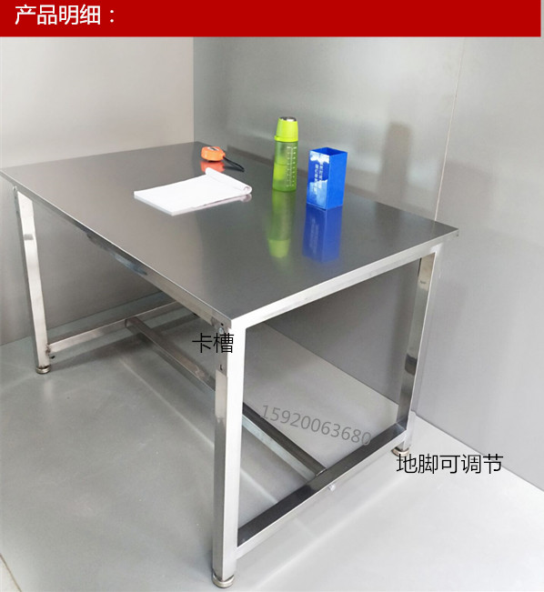 1.支架采用优质40*40mm 201不锈钢(304不锈钢可定制),每台标配带排插1个,配电线,配作业指导书看板,配调节脚,桌脚采用五金配件(五金配件结构简单连接牢固安装快捷等特点),长度,宽度,高度均可以订做。台面承重可达200-300kg