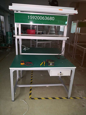特点。白色皮条封边。质感好耐磨性好,耐磨耐烫不变形。主架采用40*40*1. 2mm的铝型材,每台标配带排插1个,配电线,配作业指导书,配调节脚,桌脚采用五金配件(五金配件结构简单连接牢固安装快捷等特点),长度,宽度,高度可以订做。